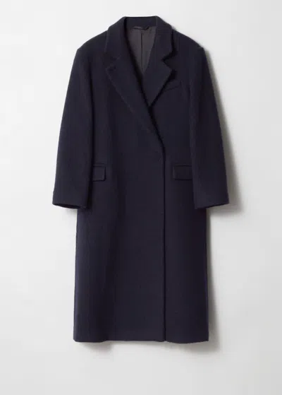 Wool Double Breasted Maxi Coat With Bold Shoulder Details In Gray