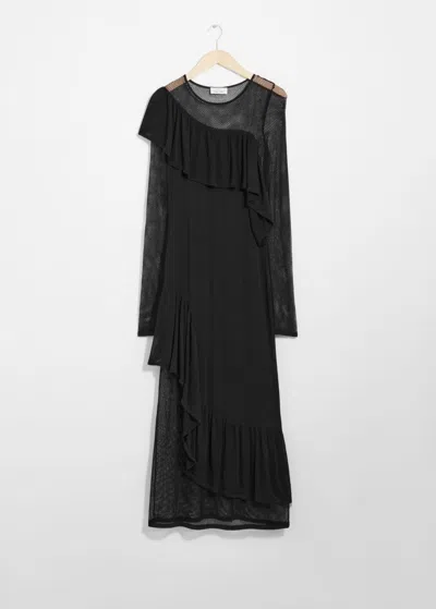 Frilled Satin Maxi Dress In Black