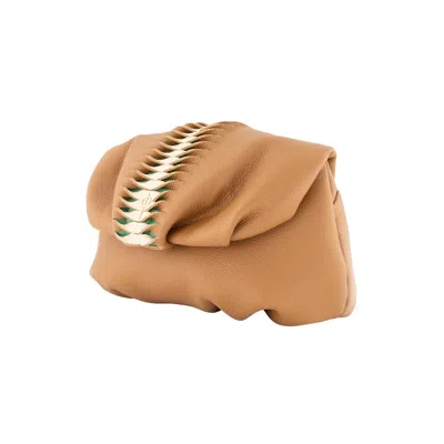 Women's Brown Tan Hera / Leather Clucth And Shoulder Bag