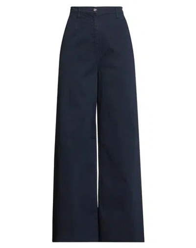 Woman Pants Navy Size 6 Cotton, Elastane In Blue