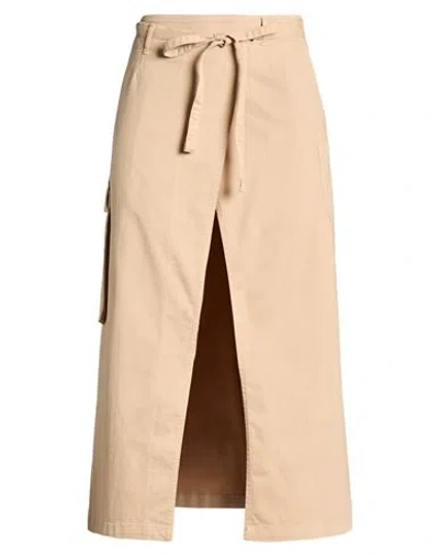 Woman Midi Skirt Beige Size 10 Cotton, Elastane In Neutral