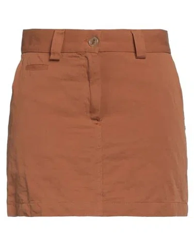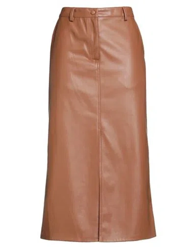 Woman Midi Skirt Tan Size 10 Polyurethane, Polyester In Brown