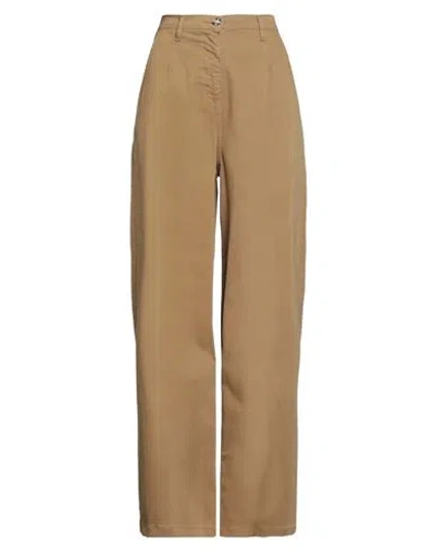 Woman Pants Khaki Size 12 Cotton, Elastane In Brown