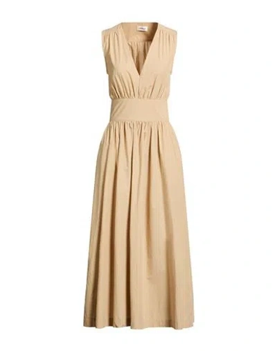 Woman Midi Dress Khaki Size 8 Cotton In Beige