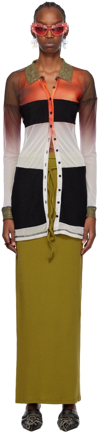 Berlin-based label Ottolinger is a collaboration between Swiss-born designers Christa Bösch and Cosima Gadient. Having met during their studies at the Basel School of Design, the two quickly began making waves with their avant-garde, anti-commercial, and fearlessly destructive challenge to luxury fashion’s status quo. While the brand’s labor-intensive creations are held to the highest standards in couture quality, the founders’ signature aesthetic truly blazes through in their uniquely hands-on, after-the-fact process of abstraction and deconstruction. Immaculately finished products are calculatedly slashed, ripped, and manipulated into bold new forms. The resulting re-assemblage represents an unlikely harmony between their meticulous construction and the antithetical spirit of punk-tinged rebellion. Military-inspired trousers and outerwear are scorched into near-oblivion, exposed seams trace ragged trails through shredded skirts, and raw-edged cut-outs linked by asymmetric knots imbue casual jersey separates with disorderly seductiveness.
