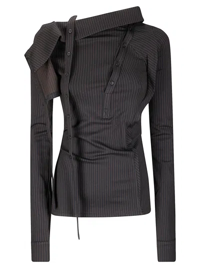 Berlin-based label Ottolinger is a collaboration between Swiss-born designers Christa Bösch and Cosima Gadient. Having met during their studies at the Basel School of Design, the two quickly began making waves with their avant-garde, anti-commercial, and fearlessly destructive challenge to luxury fashion’s status quo. While the brand’s labor-intensive creations are held to the highest standards in couture quality, the founders’ signature aesthetic truly blazes through in their uniquely hands-on, after-the-fact process of abstraction and deconstruction. Immaculately finished products are calculatedly slashed, ripped, and manipulated into bold new forms. The resulting re-assemblage represents an unlikely harmony between their meticulous construction and the antithetical spirit of punk-tinged rebellion. Military-inspired trousers and outerwear are scorched into near-oblivion, exposed seams trace ragged trails through shredded skirts, and raw-edged cut-outs linked by asymmetric knots imbue casual jersey separates with disorderly seductiveness.