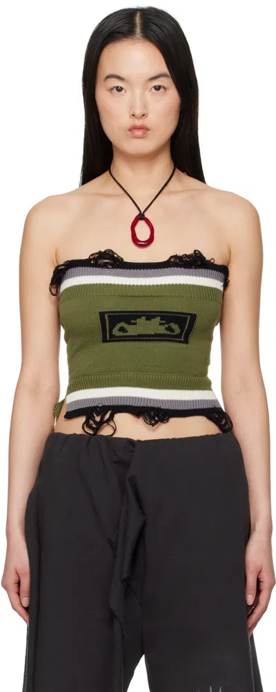 Berlin-based label Ottolinger is a collaboration between Swiss-born designers Christa Bösch and Cosima Gadient. Having met during their studies at the Basel School of Design, the two quickly began making waves with their avant-garde, anti-commercial, and fearlessly destructive challenge to luxury fashion’s status quo. While the brand’s labor-intensive creations are held to the highest standards in couture quality, the founders’ signature aesthetic truly blazes through in their uniquely hands-on, after-the-fact process of abstraction and deconstruction. Immaculately finished products are calculatedly slashed, ripped, and manipulated into bold new forms. The resulting re-assemblage represents an unlikely harmony between their meticulous construction and the antithetical spirit of punk-tinged rebellion. Military-inspired trousers and outerwear are scorched into near-oblivion, exposed seams trace ragged trails through shredded skirts, and raw-edged cut-outs linked by asymmetric knots imbue casual jersey separates with disorderly seductiveness.