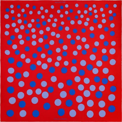 Men's Blue / Red 'planetarium' Polka Dot Silk Pocket Square In Red With Blue. Full-size. In Multi