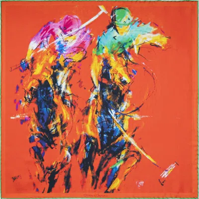 Men's Blue / Orange ‘muscle Car' Silk Pocket Square In Blue & Orange. Full-size. In Multi