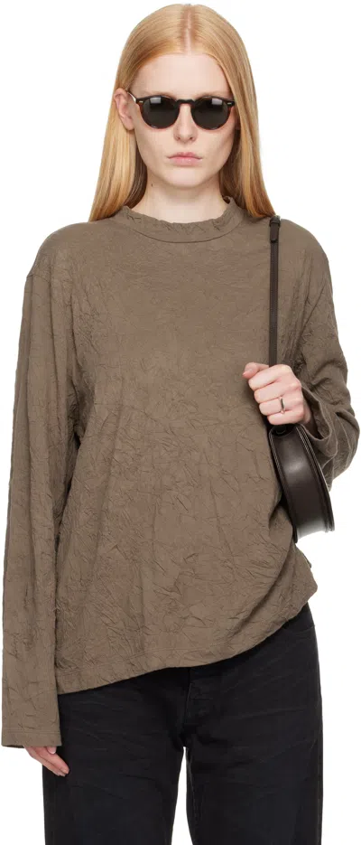 Textured Grey Top With High Neckline And Drape Detail In Black