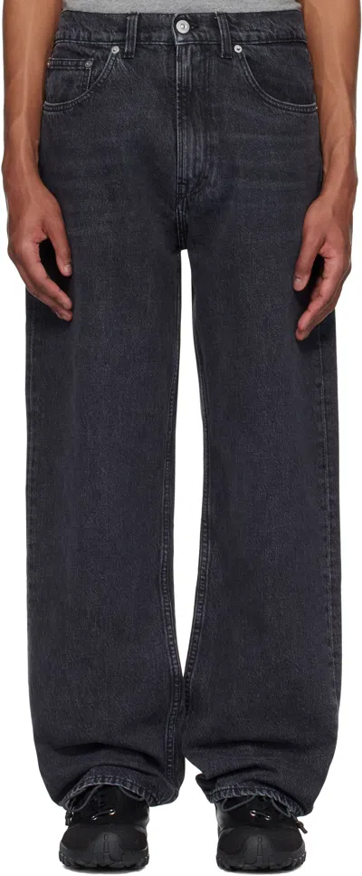 Relaxed Fit Black Button-up Shirt With Textured Finish