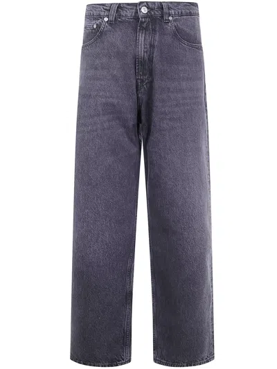Grey Denim Trousers With Front And Back Pockets In Blue