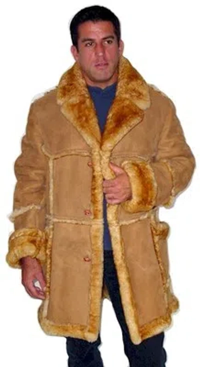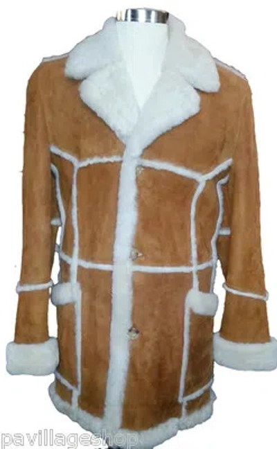 Pre-owned Men's Open Seam Marlboro Sheepskin Coat In Tan W/ White