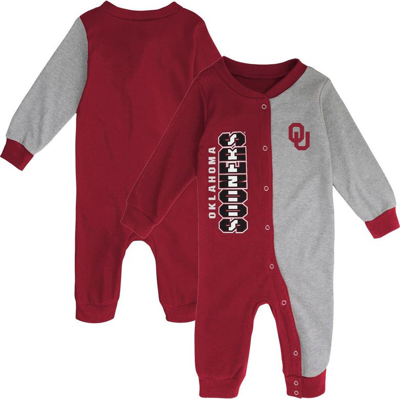 Babies' Newborn & Infant Crimson/heather Gray Oklahoma Sooners Half Time Two-tone Long Sleeve Full-snap Jump In Crimson,heather Gray