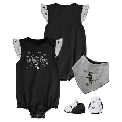 Babies' Girls Newborn And Infant Black Chicago White Sox 3-piece Home Plate Bodysuit, Bib And Booties Set