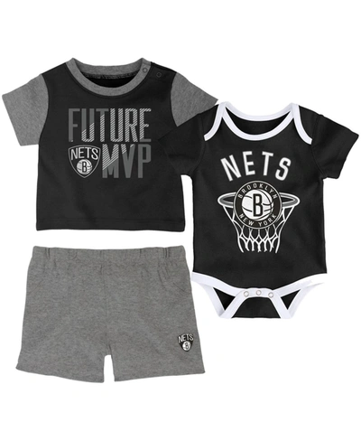 Babies' Infant Boys And Girls Black Brooklyn Nets Putting Up Numbers Bodysuit T-shirt And Shorts Set