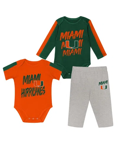 Kids' Baby Boys And Girls 3-piece Green/orange Miami Hurricanes Double Down Bodysuit And Pants Set In Brown