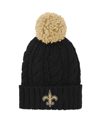 Kids' Big Girls Black New Orleans Saints Team Cable Cuffed Knit Hat With Pom