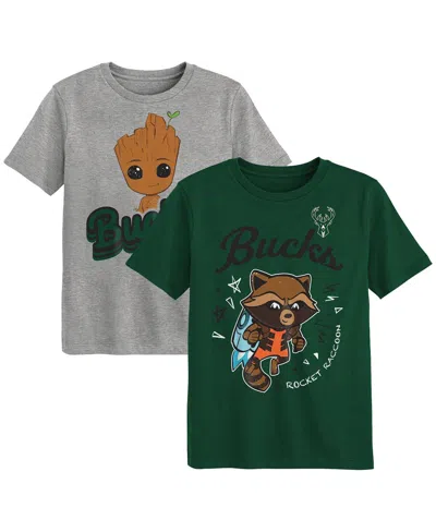 Kids' Preschool 2-piece Milwaukee Bucks Guardians Of The Galaxy T-shirt Set In Heather Gray