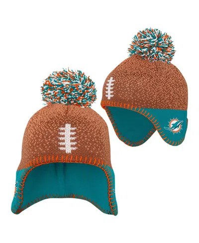 Kids' Baby Boys And Girls Brown Miami Dolphins Football Head Knit With Pom Hat