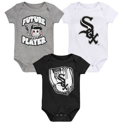 Babies' Newborn And Infant Boys And Girls Black, Heather Gray Chicago White Sox Three-piece Love Of Baseball In Black,heather Gray