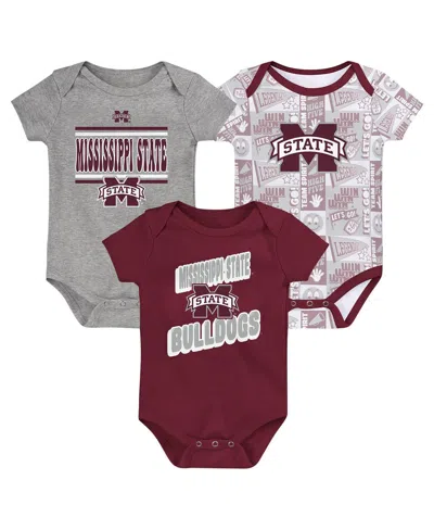 Babies' Newborn 3-pack Maroon Mississippi State Bulldogs Sunday Comics Bodysuit Set In Multi
