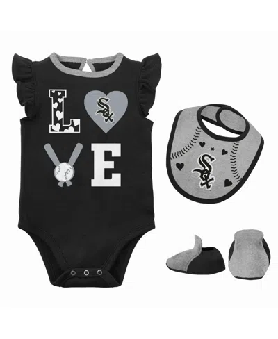 Babies' Newborn And Infant Boys And Girls Black, Heather Gray Chicago White Sox Three-piece Love Of Baseball In Black,heather Gray