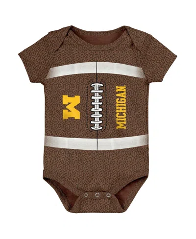 Babies' Newborn And Infant Boys And Girls Brown Michigan Wolverines Catch Me Football Bodysuit
