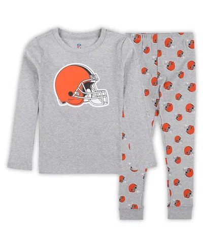 Kids' Preschool 2-piece Heather Gray Cleveland Browns Long Sleeve T-shirt And Pants Sleep Set