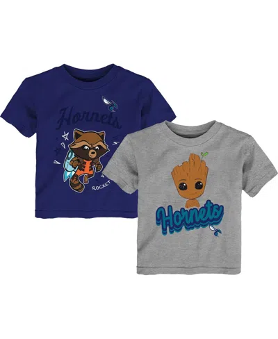 Babies' Toddler Heather Gray Charlotte Hornets 2-piece Guardians Of The Galaxy T-shirt Set In Blue