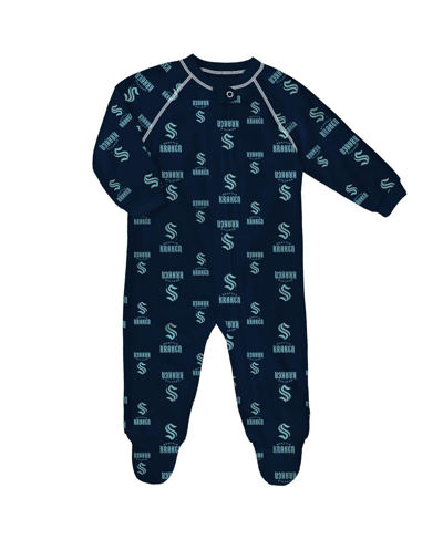 Babies' Toddler Boys And Girls Navy Seattle Kraken Team Print Raglan Full-zip Jumper Pajamas In Deep Sea Blue