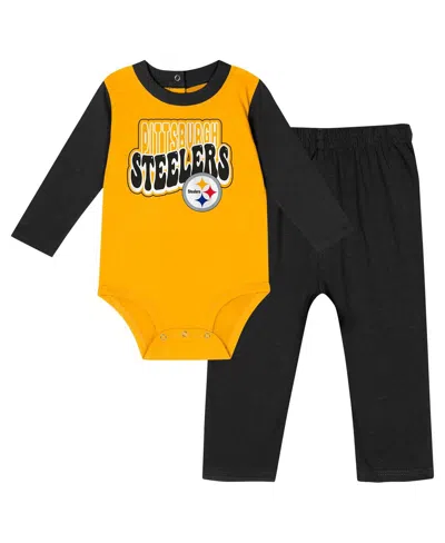 Kids' Baby Boys And Girls Black Pittsburgh Steelers Double Up Long Sleeve Bodysuit And Pants Set