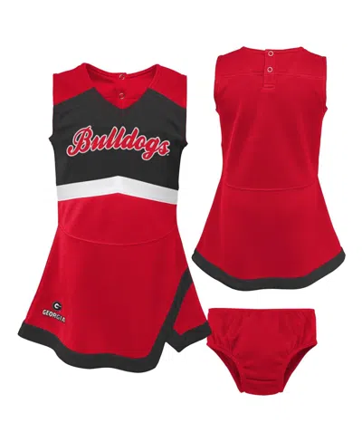 Babies' Girls Preschool Red, Black Georgia Bulldogs Two-piece Cheer Captain Jumper Dress And Bloomers Set In Red,black