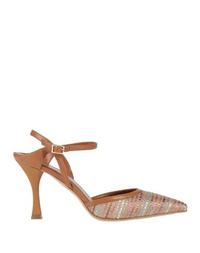 Ovyé Woman Pumps Camel Size 8 Leather In Brown