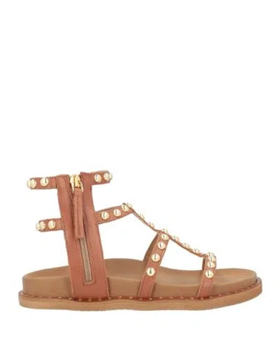 Ovyé Woman Sandals Tan Size 8 Calfskin In Brown