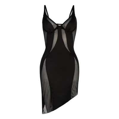 Women's Curve Asymmetric Mesh Mini Dress - Black