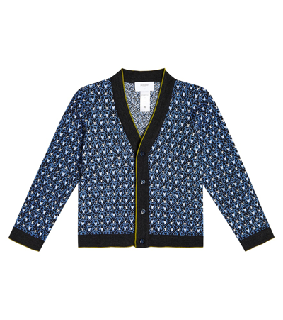 Kids' Jacquard Wool And Cotton-blend Cardigan In Multicoloured