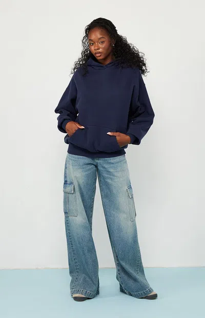 Women's Core Washed Pullover Hoodie In Navy In Blue