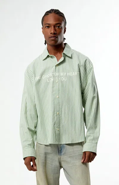 Men's Ghost Striped Woven Long Sleeve T-shirt In Green In Multi