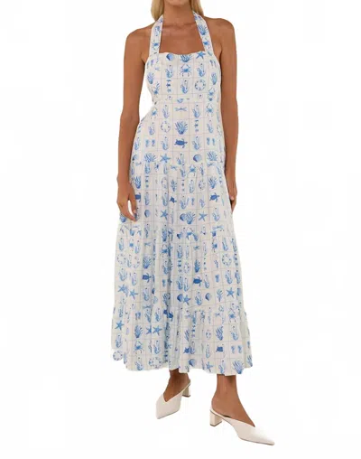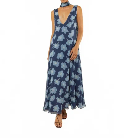 Tessie Vintage Botanical Maxi Shirtdress In Blue