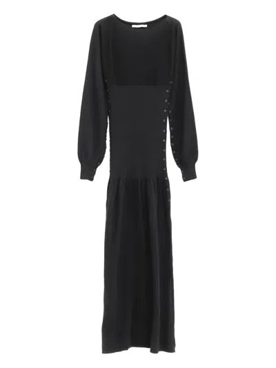 Fitted Black Midi Dress With Asymmetrical Hem And Square Neckline In Brown