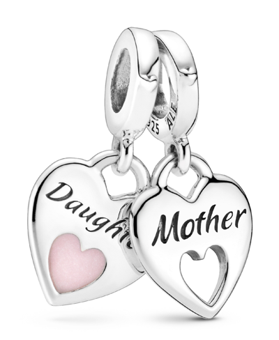 Sterling Silver Double Heart Split Dangle Charm In Pink