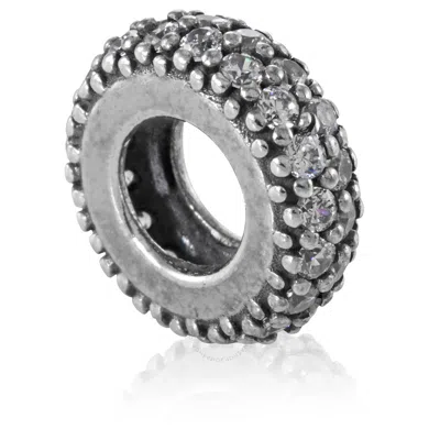 Clear Sparkle Spacer Charm In Sterling Silver In Metallic