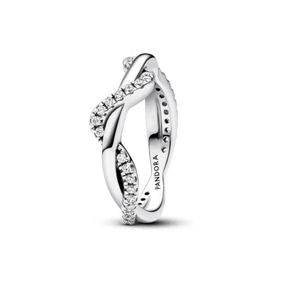 Clear Sparkling Row Clip Charm In Sterling Silver In Neutral