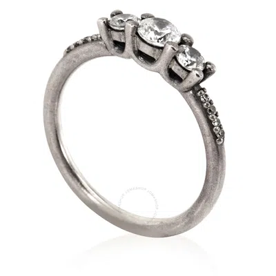Ladies Clear Three-stone Ring In Sterling Silver In Metallic