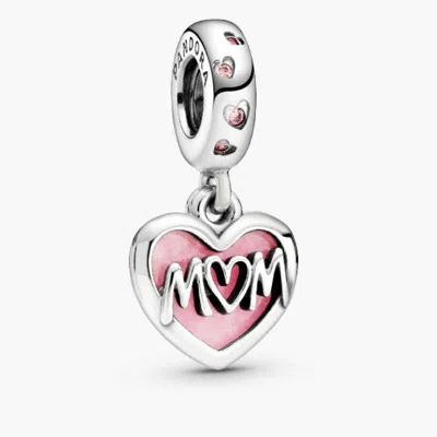 Mum And Heart Sterling Silver And Rose Charm In Metallic