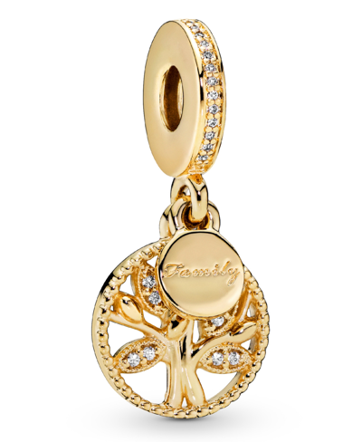 Cubic Zirconia Sparkling Family Tree Dangle Charm In Gold