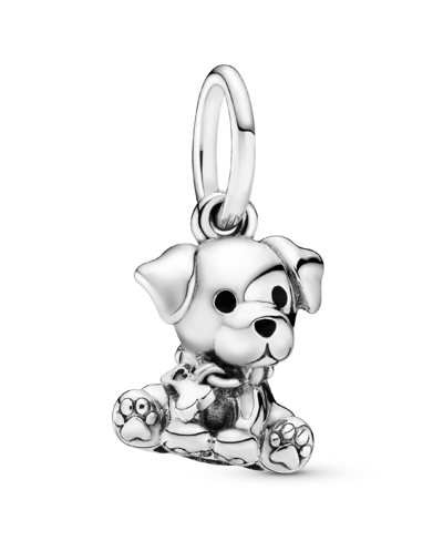 Sterling Silver Labrador Puppy Dog Dangle Charm In Black