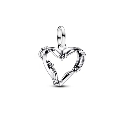 Barbed Wire Heart Medallion Charm In Metallic