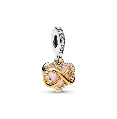 Two-tone Sparkling Infinity Heart Dangle Charms In Silver